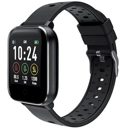 Compacte (42,7 x 35,9 x 11,4 mm), la smartwatch est disponible en trois coloris (noir, rose et gris) et livrée avec un bracelet en silicone de taille standard (20 mm). Elle fait donc illusion face au poids lourd du secteur. On ne retrouve en effet que le strict minimum : le Bluetooth en version 4.2, une étanchéité relative via la norme IP68 qui lui assure une résistance à la poussière et à l’eau (1 m pendant 1h), un capteur de fréquence cardiaque et une batterie d’une capacité de 180 mAh qui lui assure une autonomie de 3 à 4 jours environ.